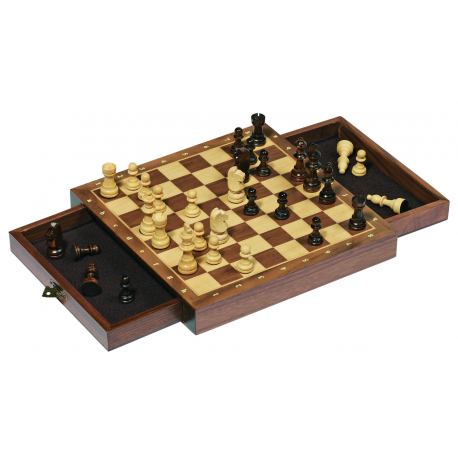Magnetisches Schachspiel mit Schubladen Spielspaß für die ganze Familie mit dem wohl ältesten Strategiespiel der Welt. Mehr Standfestigkeit erhält das Goki Schach durch magnetische Figuren und Schubladen zur Aufbewahrung. Maße: 25,8 x 25,8 x 3,7 cm Gewicht: 1,08 kg Material: Holz
