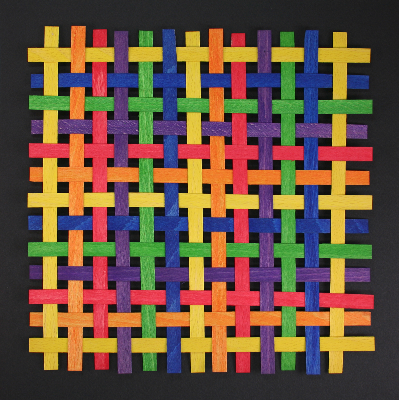 Das Holzspielzeug "Das Verschränken von Holzspänen" eignet sich zum SPIELEN für Kinder ab 5 Jahre und Erwachsene. Es handelt sich um ein Spiel mit Linien nach Friedrich Fröbel, dass im Erzgebirge hergestellt wird, bei dem Holzspäne in den Farben des Regenbogens zu flächigen Mustern zusammengefügt werden.