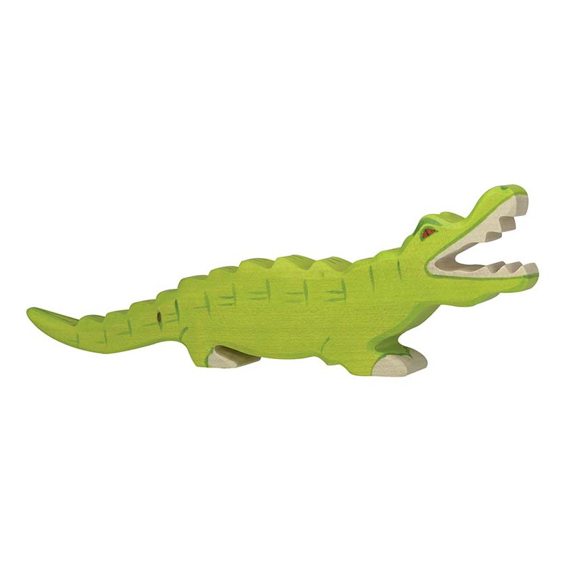 Sieht es nicht hübsch aus, das Krokodil? Kinder lieben es, mit Holzfiguren zu spielen. Das robuste Krokodil von Holztiger lässt sich gut von den Kinderhänden greifen. Jede Spielfigur von Holztiger ist ein Unikat. Das Krokodil ist mit ungiftigen Wasserfarben bemalt.
