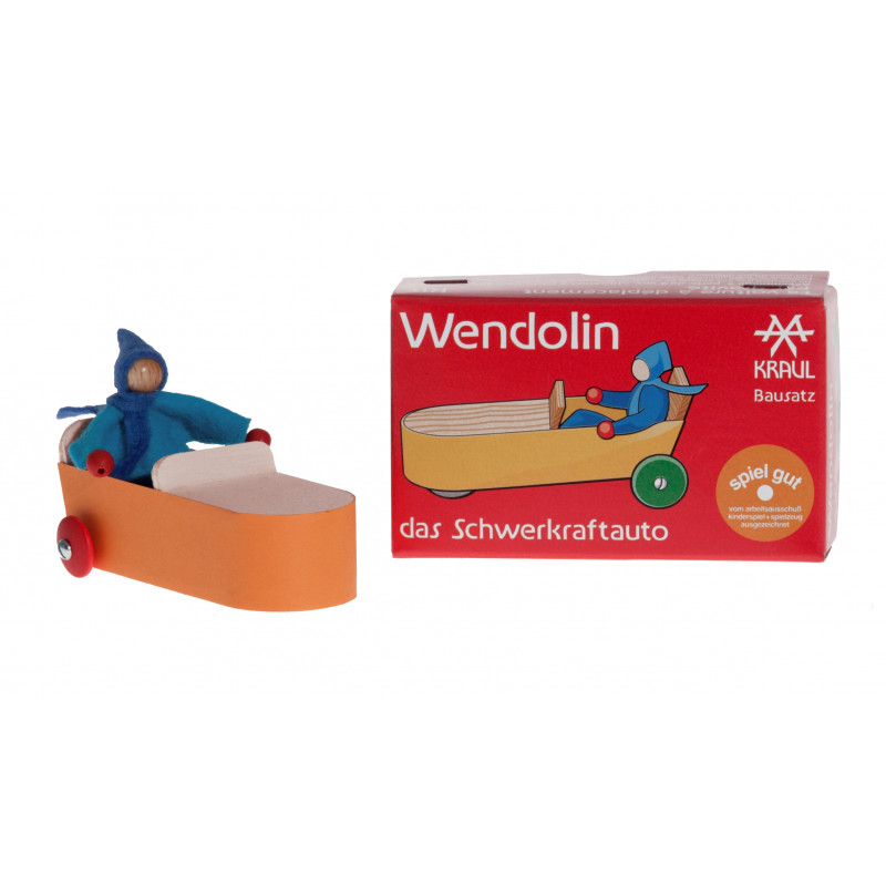 Eine schwere Stahlkugel unter der Kühlerhaube treibt den Wendolin an. Sobald die Fahrbahn etwas geneigt wird, fährt der Wendolin immer vorwärts bergab, selbst wenn er dazu erst wenden muss.