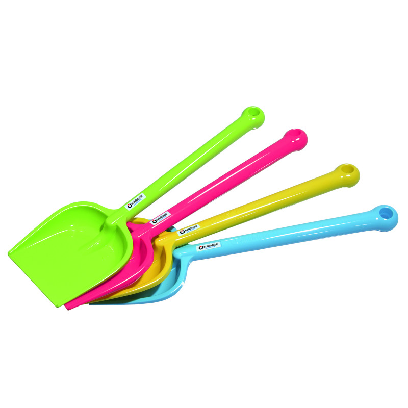 Der Spaten ist in den Farben blau, grün, rot und gelb erhältlich.