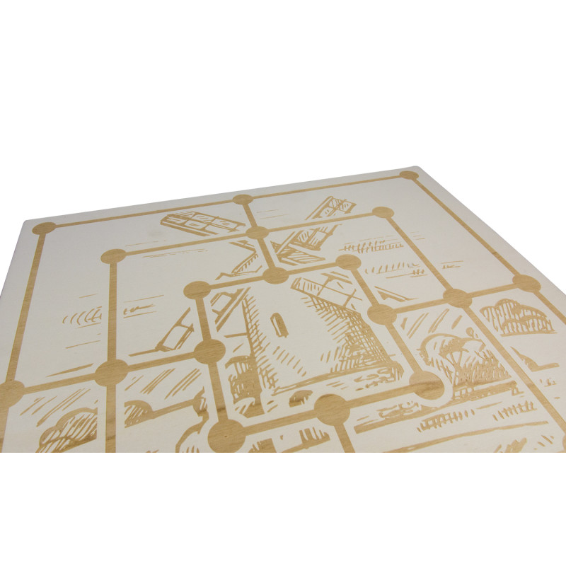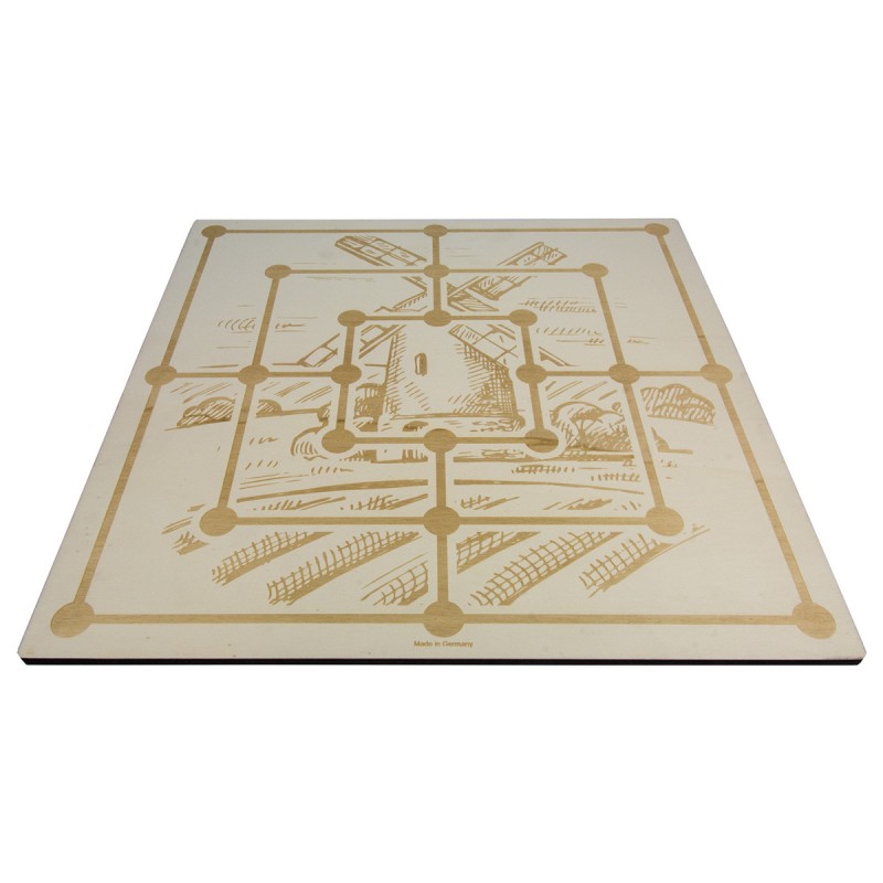 hochwertig mit Schachspielfeld bedruckt, auf der Rückseite mit Mühlespielfeld graviert